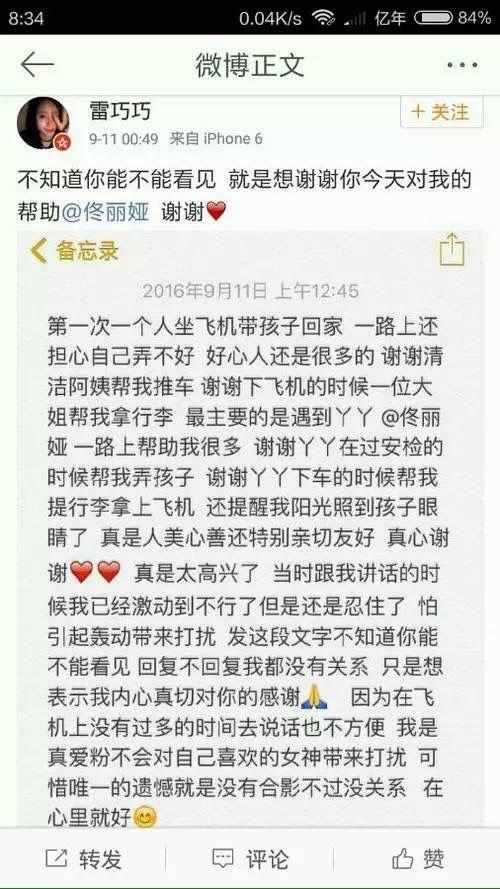 佟丽娅不仅不用助理照顾自己,还帮助陌生人带孩子,拿行李。