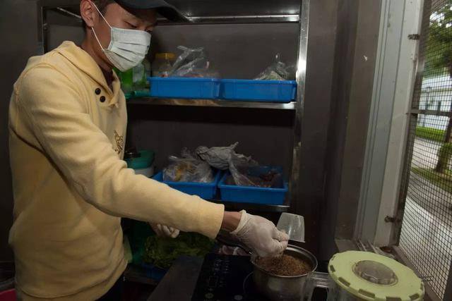 到了喂食穿山甲的时候了,小黄取出穿山甲的配合食物,倒入热水中,像搅拌芝麻糊似地来回搅拌。" 照顾穿山甲是个很大的挑战,因为它们很脆弱,温湿度、食物稍微不适合,它们的健康状况可能就会急转直下!" 在用手背测量,确保食物温度适宜后,小黄满意地点点头,把食物端到了穿山甲身边。图为为穿山甲制作食物 摄影:肖诗白 ( 来自 : 大自然保护协会 TNC )