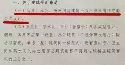 第一条,可谓针对商业、办公、研发用房这三种建筑形式设置住宅,进行了全面禁止;