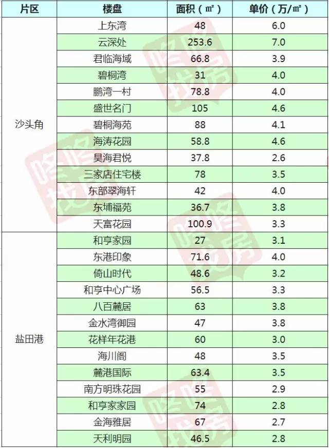 盐田区12月份二手房成交量环比11月份上升约2成。盐田的三个片区中沙头角片区二手房成交量一直是占盐田三片区的大头,也是盐田区交易量最活跃的片区,占盐田区成交的一半。