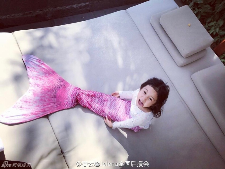 组图:甜馨扮美人鱼 网友:果然继承老爸的基因