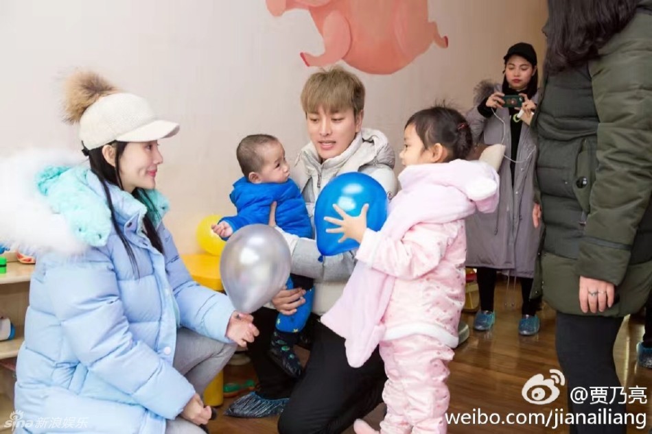 1月16日,贾乃亮晒出一家三口做公益的照片,照片中贾乃亮一家来到福祉中心和小朋友们一起做游戏,小甜馨新换了个小辫子发型,显得文静许多更可爱了。