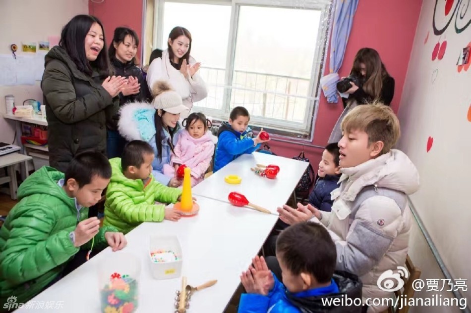 1月16日,贾乃亮晒出一家三口做公益的照片,照片中贾乃亮一家来到福祉中心和小朋友们一起做游戏,小甜馨新换了个小辫子发型,显得文静许多更可爱了。