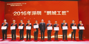 深圳新闻网讯 首届“鹏城工匠”揭晓,10位“鹏城工匠”每人获得50万元重奖;首批认定的30位“技能菁英”每人获得20万元“留洋”经费,用于赴海外研修培训。昨天,2016年度“深圳市高技能人才认定暨技能大赛总结”大会在深圳人才园举行,一批高技能人才受到表彰。