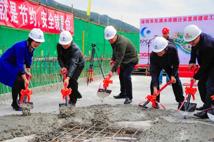 1月17日上午,东涌水库搬迁安置房的地块一项目举行主体封顶仪式,预计今年底该项目将全部完工。