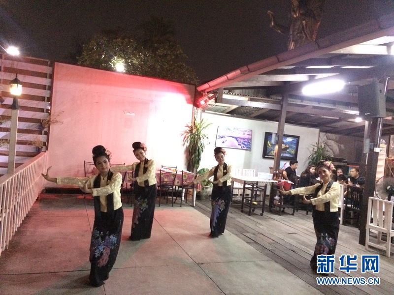 1月14日,普密蓬桥下餐厅的缅甸孟族歌舞表演。新华网记者 陈家宝 摄
