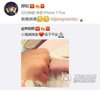 Baby与黄晓明喜得爱子 半个娱乐圈都发来贺电