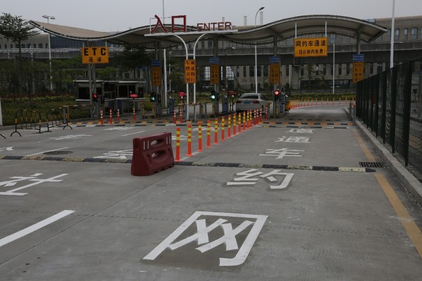 “网约车上客通道”用于网约车上客及蓄车用途,设置有上客通道和蓄车区,共设置有47个蓄车候客车位和24个即停即走上客车位,同时设置有 风雨连廊以提供全天候服务,巡游出租车及其他非网约车辆不得进入。网约车在蓄车区可享受15分钟免费停车蓄车,但通过上客通道上客必须遵守3分钟即停即走管理规定。