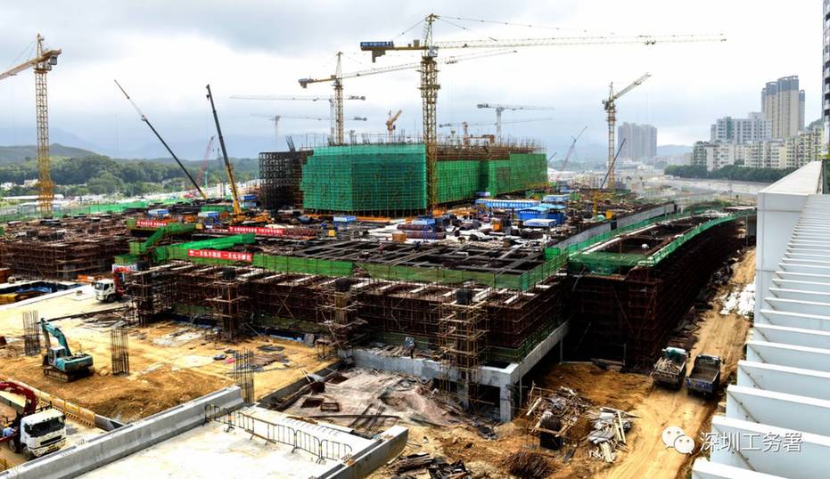 莲塘口岸旅检大楼结构封顶,出入境车行桥上部结构完成.