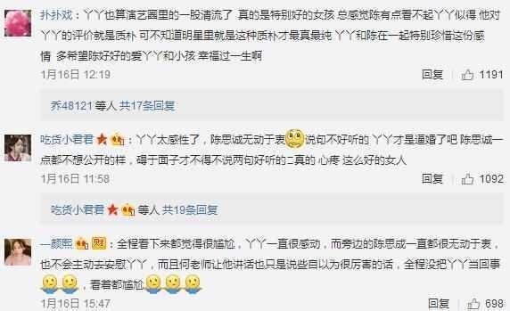 借用网友的一段话@扑扑戏:丫丫也算演艺圈里的一股清流了,真的是特别好的女孩,总感觉陈有点看不起丫丫似得,他对丫丫的评价就是质朴,可不知道明星里就是这种质朴才最真最纯,丫丫和陈在一起特别珍惜这份感情,多希望陈好好的爱丫丫和小孩幸福过一生啊