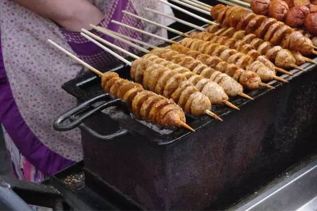 通常是糯米肠和香肠,先经过炭烤,而糯米肠切开后,涂上一些酱油膏,香香的,一个就很饱啦。