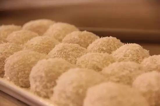 软软糯糯的糯米糍,外表裹着一层椰蓉,里面包着红豆蓉,白白净净的外表可爱又可口!