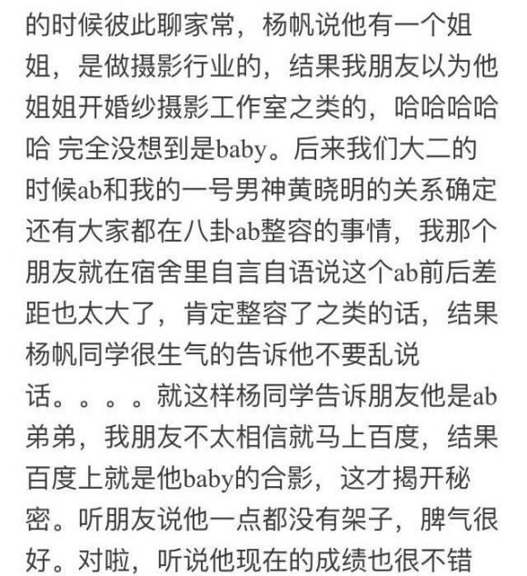 有网友发现了最边上的男子很像baby的弟弟,杨帆。
