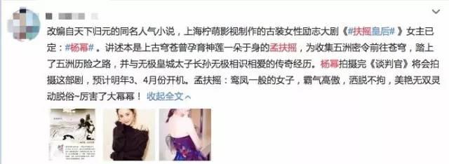 2016年年底就曝出《扶摇皇后》女主已定,是杨幂。