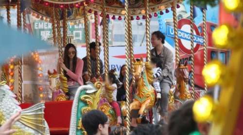 吴佩慈和男友带子女现身嘉年华 骑木马超温馨