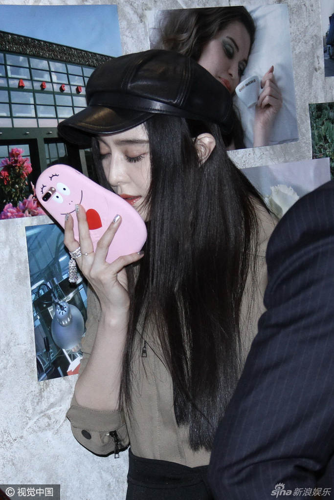 近日,范冰冰出席某活动躲墙角玩手机,超级可爱的手机壳暴露了范爷的少女心。视觉中国/图