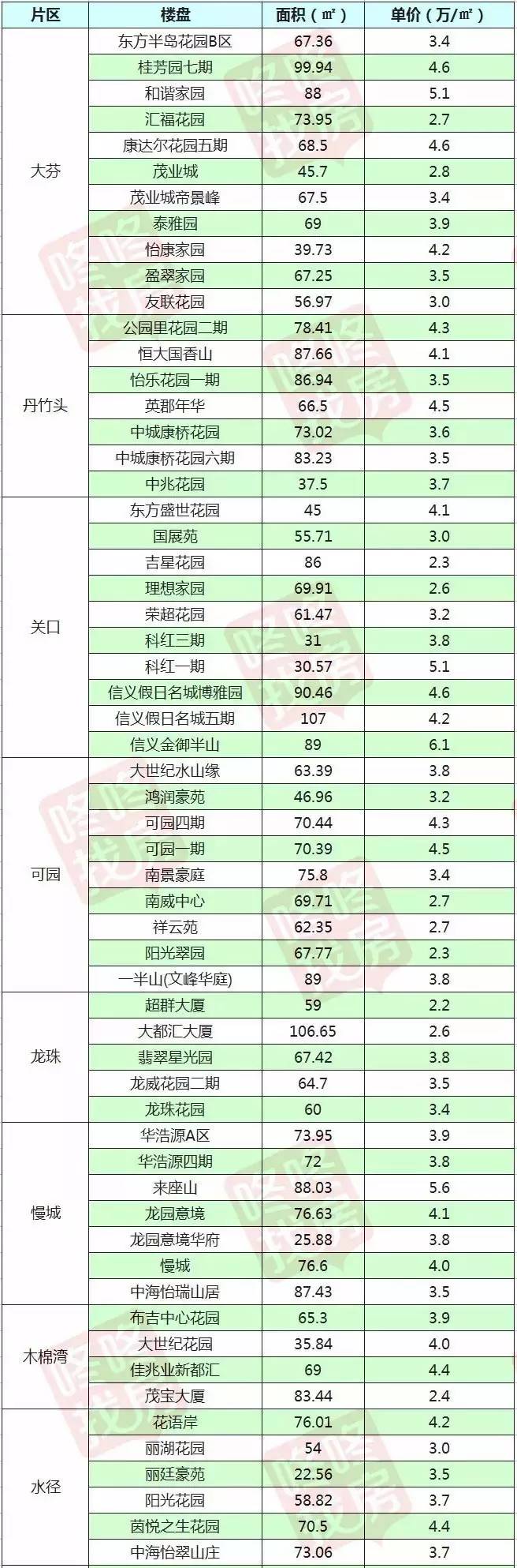 最新二手房价格表