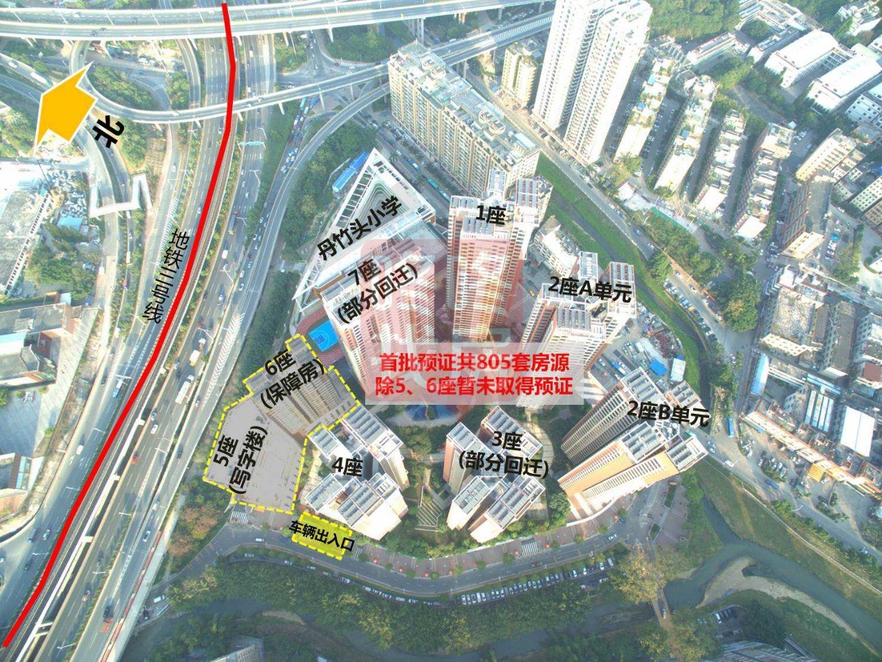 项目位于龙岗大道与沙平南路交汇处西南侧,紧邻丹竹头小学。项目由六栋高层围合而成。临近龙岗大道,距离3号线丹竹头地铁站约700米,交通尚算便利,但部分临路户型易受噪音影响。目前项目周边商业配套较为缺乏,但英郡年华·时光里规划了一个建面约4.5万平的集中商业,也算是弥补了片区集中商业的缺失。合正丹郡周边规划了多个旧改项目,其中包括占地约12万平米与合正丹郡相邻的恒大吉厦旧改,而旧改的落成也会对城市面貌及配套进一步的改善。