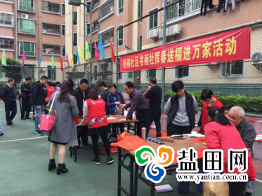 深圳新闻网盐田讯 在春节来临之际,梧桐社区书画社于1月18日下午在辖区篮球场举行“挥春送福进万家”活动,将最诚挚的新年祝福送给社区居民。