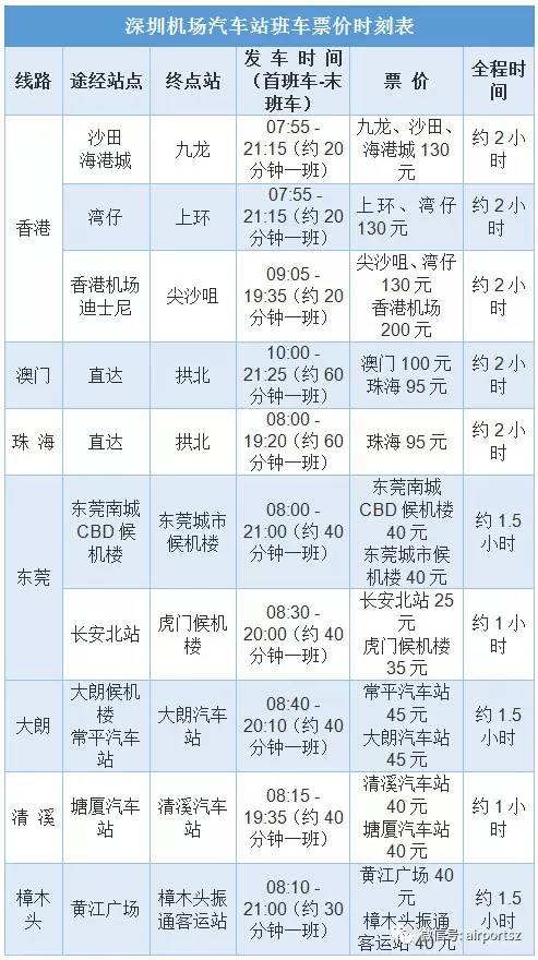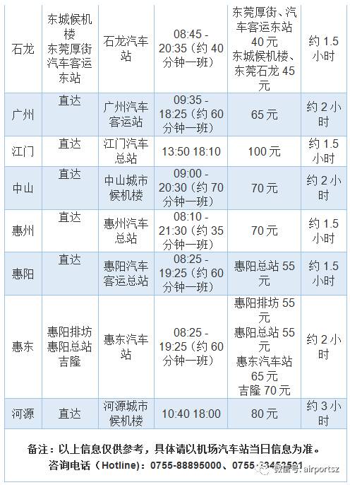深圳宝安机场至天安云谷城市候机楼 时刻表
