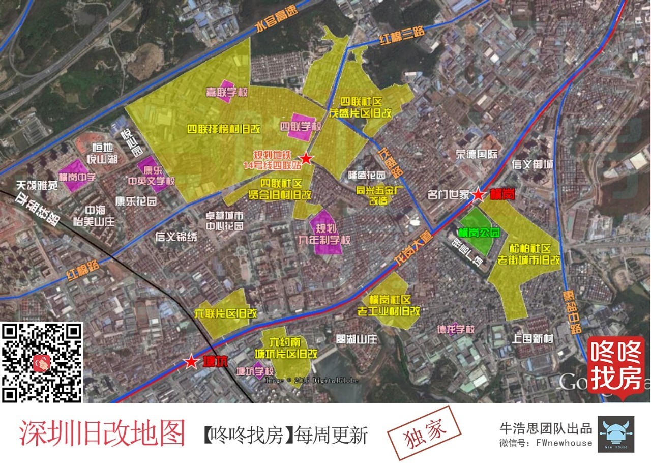 龙岗街道规划约24个旧改项目,拆除重建建设用地总面积约有402万平,是龙岗更新规模最大的街道,项目主要集中分布在南联、南约以及龙东,其中南联的区位条件较好,城市更新启动较早,目前已有一定的商业基础,加上后期旧改集中,规模效应明显;南约片区是龙岗未来重要的产业科技城,现有一定的产业基础,有不少工业项目更新,例如天安和京基项目,旧改难度相对较小,外加14号线规划利好;龙东区位条件和现有配套都相对差,关注度也较一般,从现有规划项目来看,旧改进程和速度较缓慢,未来有16号线规划利好。