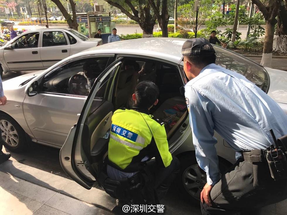 2月3日下午,深圳龙岗交警铁骑在龙翔大道吉祥路口值勤时发现一部小车防盗器一直在响,民警立即上前查看。