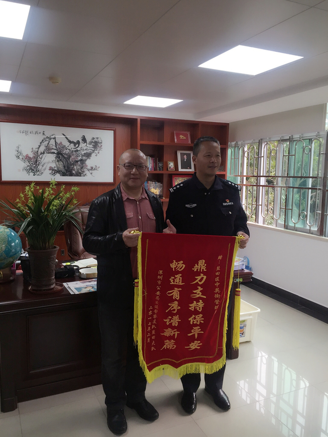 深圳新闻网盐田讯 2月7日下午,深圳市公安局交通警察局盐田大队李广群大队长一行人来访中英街,并赠与盐田区中英街管理局“鼎力支持保平安,畅通有序谱新篇”的锦旗。