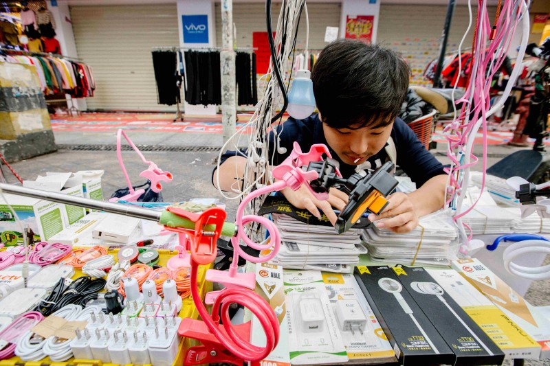 △来自潮汕揭阳的客家人,年前刚刚来深圳,现在每天都会在西乡步行街摆摊,这是一个有点"特别'的小伙,聊天的时候顺便请他帮忙贴了手机膜,总是一脸的腼腆。