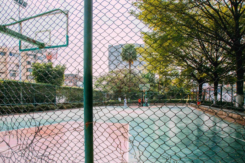 △傍晚会有很多学生和附近居民来篮球场组队打球