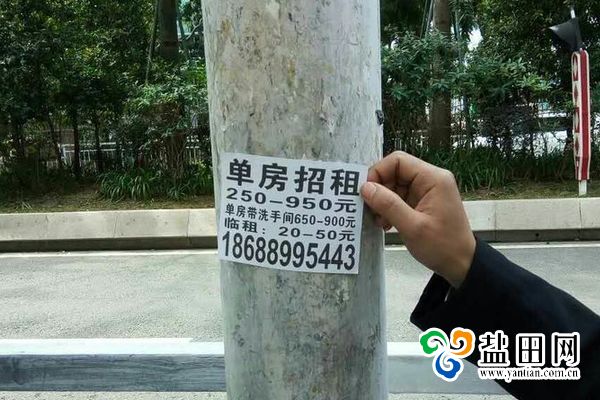 深圳新闻网盐田讯 2月14日,海山街道执法队在日常巡查中,巡查至辖区海山路广富百货门前路段时,发现一人正在户外公共设施上乱张贴招租广告。现场,执法队对其进行了口头教育并罚款200元整。