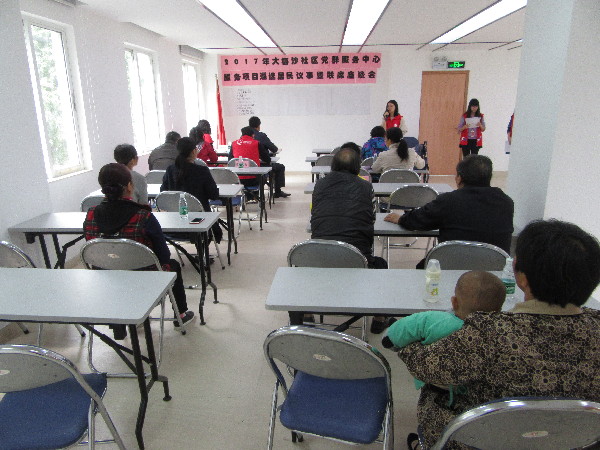 受邀参加本次会议的有社区工作站站长、副站长、工作站代表、居委会代表、合作方代表、义工代表、居民代表。首先,大梅沙社区党群服务中心负责人简要介绍了本次会议的背景目的、会议流程。接下来是服务项目遴选的投票,每位居民都选择了自己认为重要的服务项目,经过唱票统计了六大项和二十五细项服务项目作为中心的服务内容。