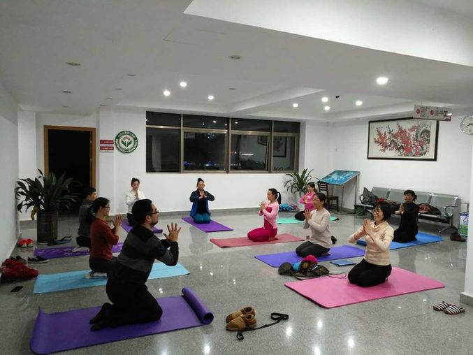深圳新闻网盐田讯 2月14日晚,正当大部分青年男女选择外出约会度过情人节时,小梅沙社区的妇女朋友选择带老公参加社区瑜伽班学习。在小梅沙社区工作站一楼多功能厅,有11位学员参与瑜伽培训,其中两位男士学员格外惹眼。据了解,其中一位男士为瑜伽班学员的老公,另一位为瑜伽班学员的亲戚。
