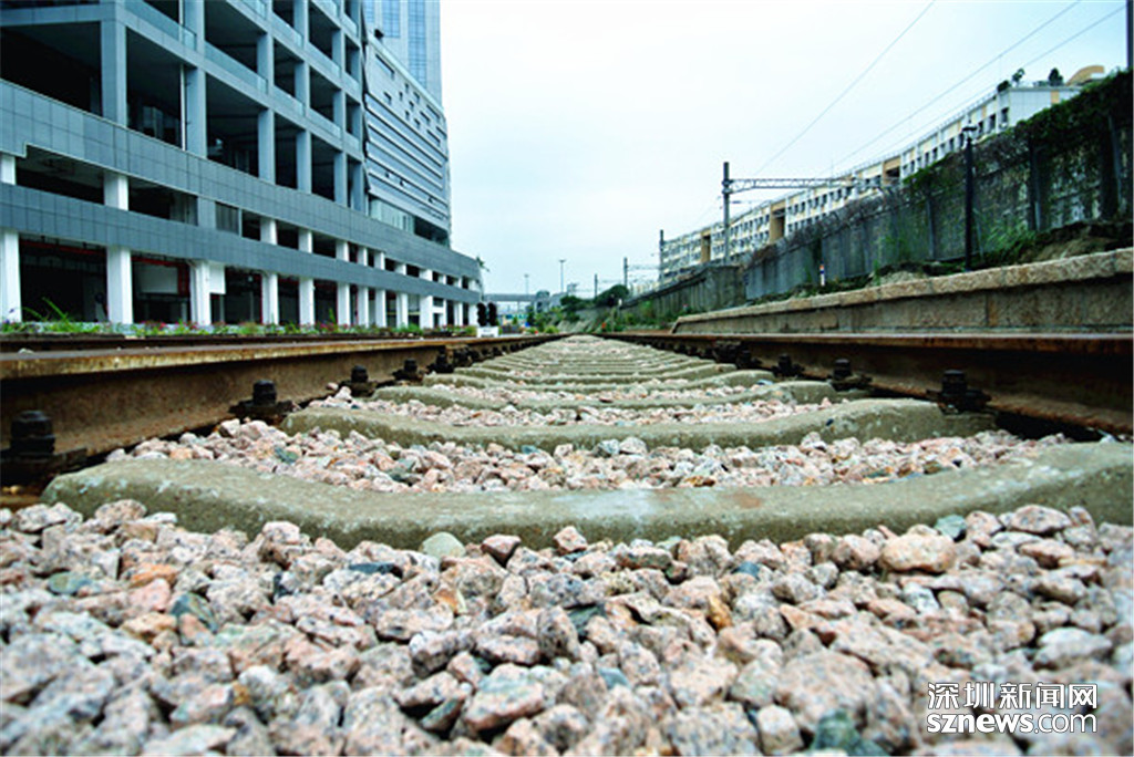 当天下午4点左右,记者来到罗湖区清水河一路附近,找到了这条近日备受关注的老火车道——从地铁3号线草埔站D3出口步行200米左右,就到了深业进元大厦楼下,这里即是这处铁路景观的起点。