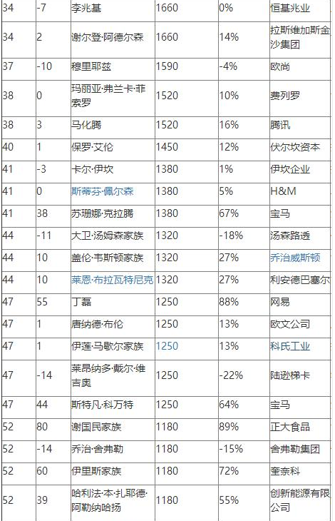 根据榜单,今年共计23位新人进入前100名,46岁的顺丰速递掌门人王卫表现最为亮眼。自顺丰速递2月上市以来,王卫的财富迅速飙升五倍,以1860亿元的财富位列大中华区第三,全球第25位,比去年上升305位。PayPal、Tesla和SpaceX三家公司的创始人埃隆·马斯克首次进入前100名。