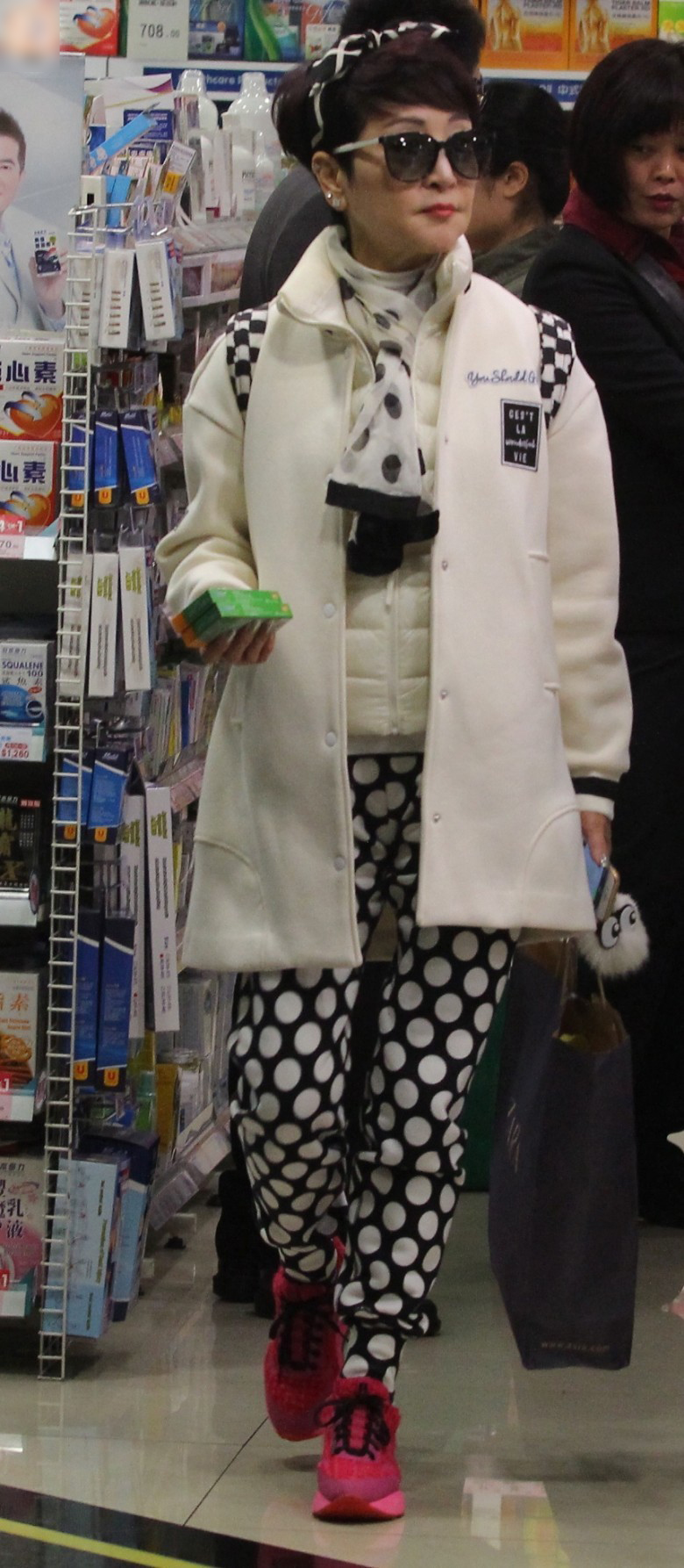 据香港媒体报道,谢霆锋和谢婷婷妈妈狄波拉出名注重打扮,每次露面必定执到正,全身上下更是例必搭配极致。日前狄波拉再一次示范何为“会穿衣”的装扮,当日傍晚6时多,以黑白为主调的狄波拉现身中环,雪白外套衬黑白波点裤,搭配黑白格仔背囊和黑白头箍,连背囊上的挂饰都用黑白色,认真一丝不拘,狄波拉当日弃名店不入,反而行药房买药,选了一盒敏感药即急急走人。