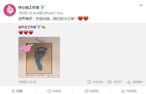 2017年1月6日,小海豚公主降临,初为人父人母的霍建华和林心如都兴奋极了。