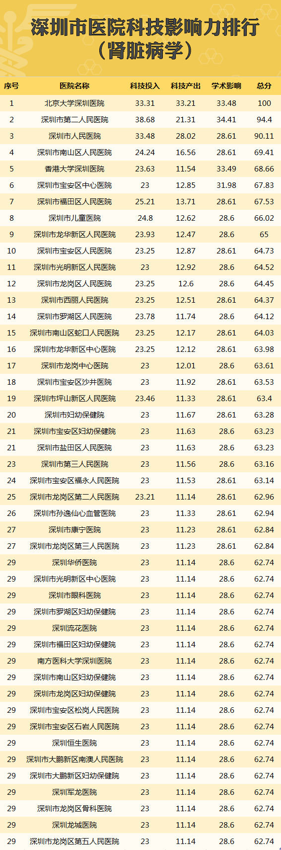 深圳首个医院科技影响力排行榜出炉:市二院名列第一
