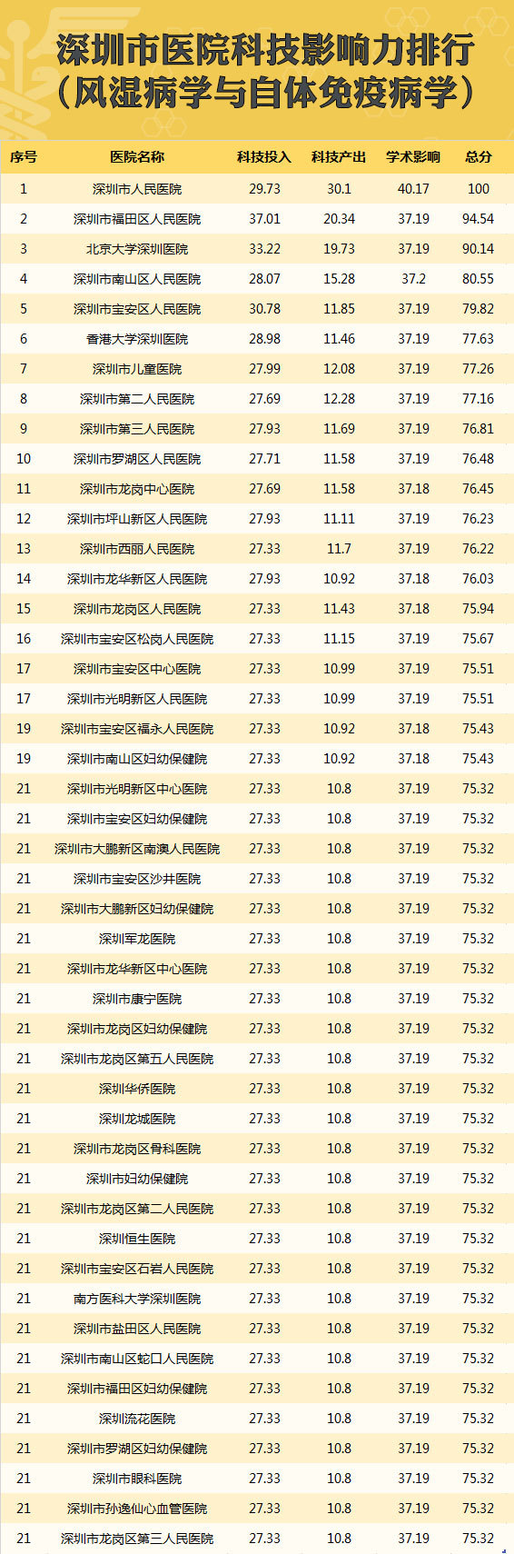 深圳市医院科技影响力排行