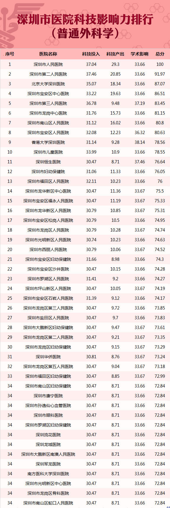 深圳首个医院科技影响力排行榜出炉:市二院名列第一