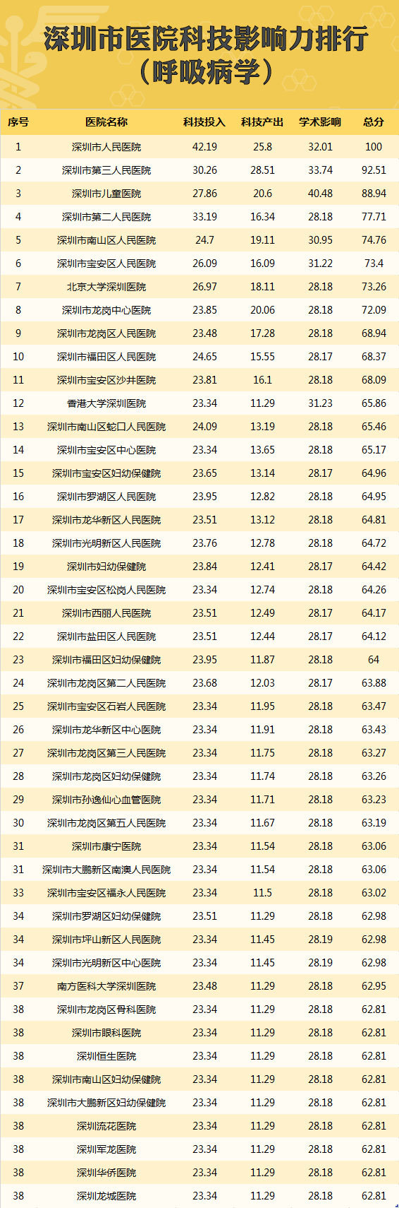 深圳首个医院科技影响力排行榜出炉:市二院名列第一