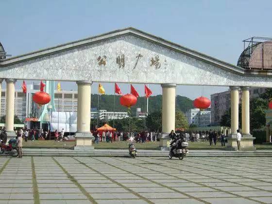 公明名称来源于原有的公明墟。明朝天顺年间,在现在将石村的附近,就有了周家村墟;到清嘉庆年间,出现了白龙岗墟,也就是今天的薯田埔村的前身,还有永长墟(在今松岗罗田);清光绪年间,原来的白龙岗墟附近,又出现了丰和墟。其中,以丰和墟最为兴旺。后来,因为这几个宗族之间发生纠纷,在楼村武举人陈海神、合水口村麦晓孙的倡议下,于 1929 年,在合水口与上村的交界处,按照香港元朗墟的模式,建公平墟,取意“买卖公平”,又叫义和圩(即移和圩)。1931 年改名公明墟,取“公道光明”的含义。