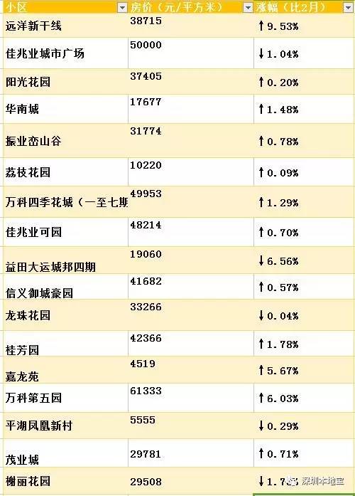 3月深圳各小区房价表,快看看你家的房子是涨了还是降了?