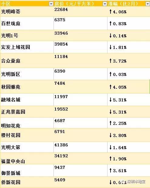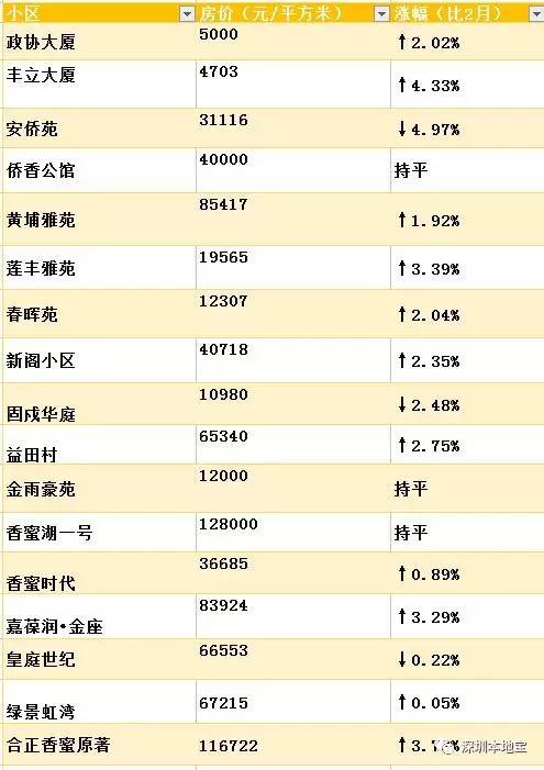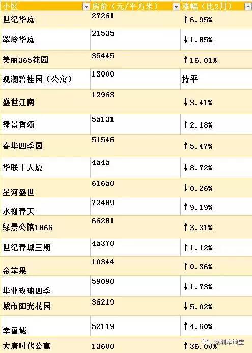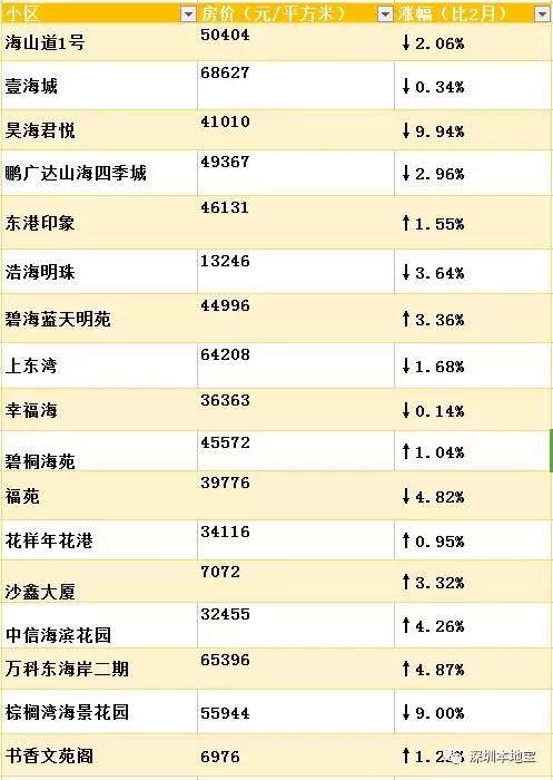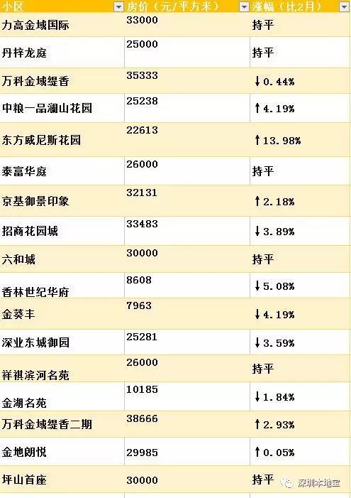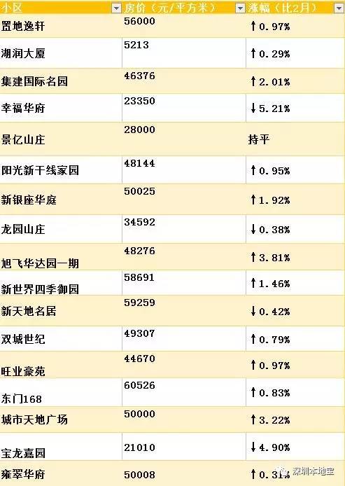 给你萌整理出了深圳3月最新小区的价格表