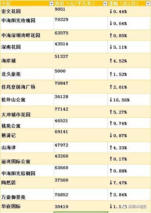 3月深圳各小区房价表,快看看你家的房子是涨了还是降了?