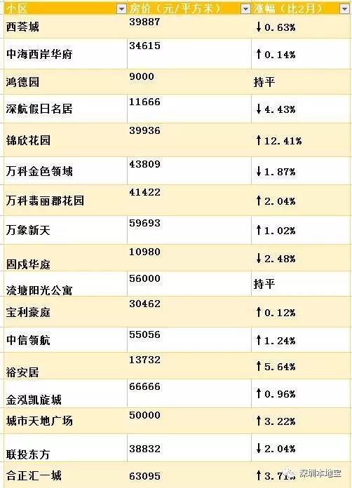 3月深圳各小区房价表,快看看你家的房子是涨了还是降了?