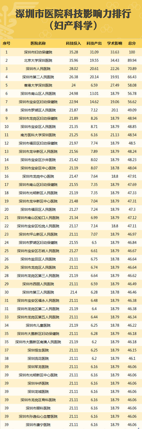 深圳首个医院科技影响力排行榜!26个学科冠军诞生,你关心的医院在哪?