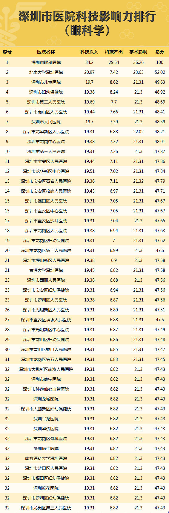 深圳首个医院科技影响力排行榜!26个学科冠军诞生,你关心的医院在哪?