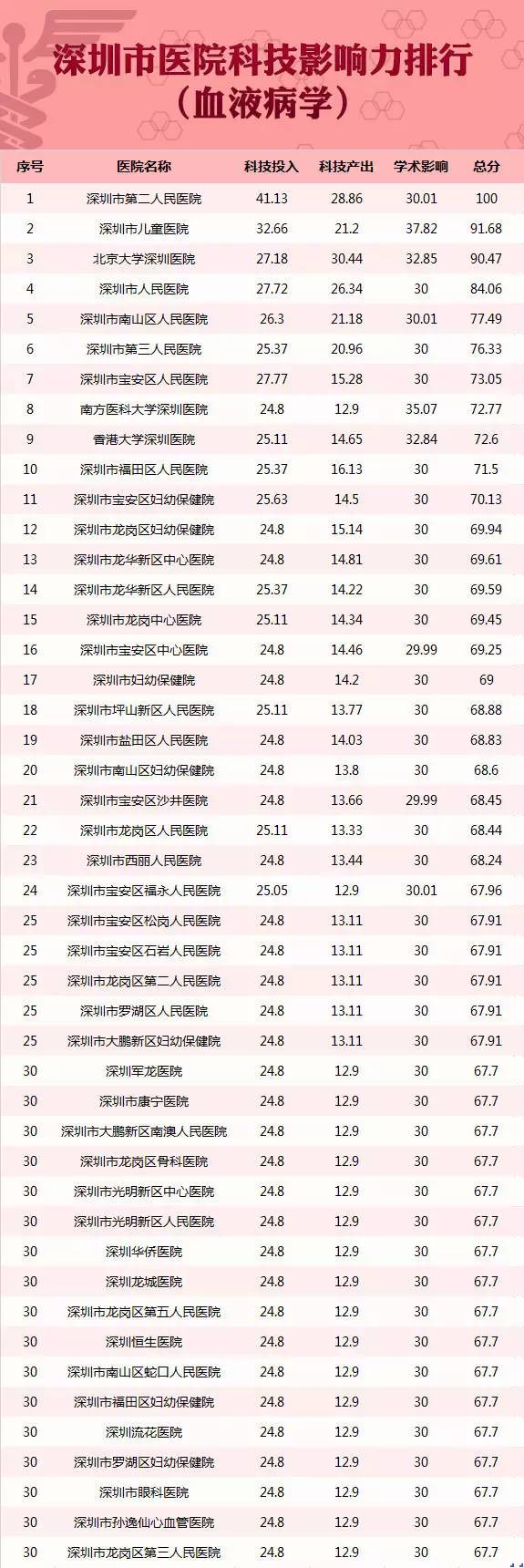 深圳首个医院科技影响力排行榜!26个学科冠军诞生,你关心的医院在哪?