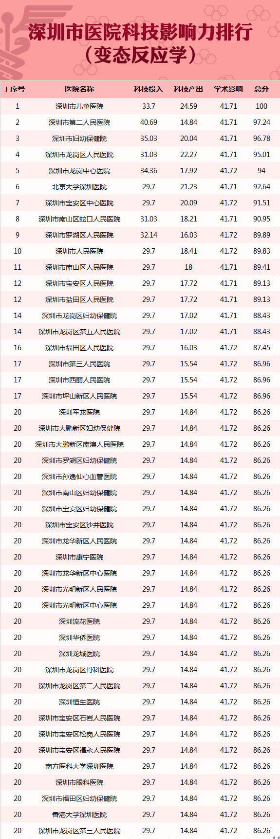 深圳首个医院科技影响力排行榜!26个学科冠军诞生,你关心的医院在哪?