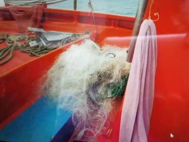 3月12日上午,深圳杨梅坑的渔民,好像捕到了一个不得了的大家伙。走近一看,坏了!这竟然是一头鲸鱼,被渔网缠住了,动弹不得。